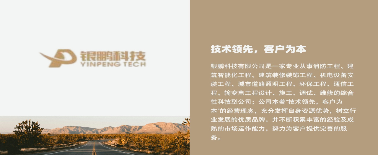 銀鵬科技有限公司是一家專業(yè)從事消防工程、建筑智能化工程、建筑裝修裝飾工程、機電設(shè)備安裝工程、城市道路照明工程、環(huán)保工程、通信工程、輸變電工程設(shè)計、施工、調(diào)試、維修的綜合性科技型公司。公司具有建設(shè)主管部門頒發(fā)的《建筑業(yè)企業(yè)資質(zhì)證書》:建筑裝修裝飾工程專業(yè)承包壹級、消防設(shè)施工程專業(yè)承包壹級、電子與智能化工程專業(yè)承包壹級、防水防腐保溫工程專業(yè)承包壹級、建筑機電安裝工程專業(yè)承包壹級資質(zhì)、通信工程總承包貳級、市政公用工程施工總承包貳級、建筑工程施工總承包貳級、古建筑工程專業(yè)承包貳級、機電工程施工總承包貳級、輸變電工程貳級、特種工程(特種防雷)專業(yè)承包不分等級、智能...